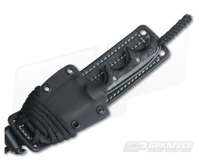 Sheath: Includes a custom molded Kydex sheath with paracord neck lanyard, cord lock, bolt-on belt hook and leather belt loop for multiple carry options.
