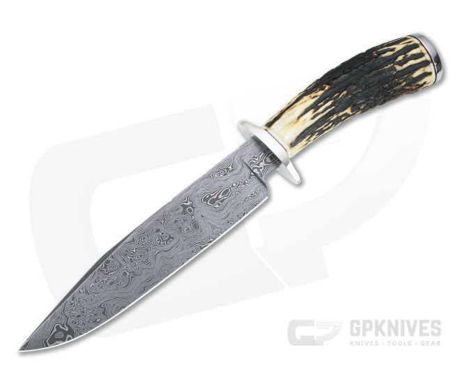 Renowned for his stunning custom Damascus fixed blade hunters and fighters, Bill Miller A.K.A. WM Knives makes heirloom quality knives with timeless designs featuring hand forged Damascus blades. Elevating the visual appeal further, the knives feature elegant natural material handles, polished fittings and exotic leather and hide sheaths. This custom Fighter comes with a custom carbon Damascus blade and sambar stag handle.