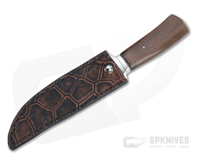 Handle: Made from durable and handsome yarran wood, the integral handle design covers the blade tang and is secured by a single small pin. Yarran wood is an Australian hard wood and member of the Acacia family along with Koa and has a stunning figure. Contoured for a comfortable and secure feel in the hand, the handle is topped by a polished stainless steel bolster and double guard. Includes padded zipper pouch and information card.