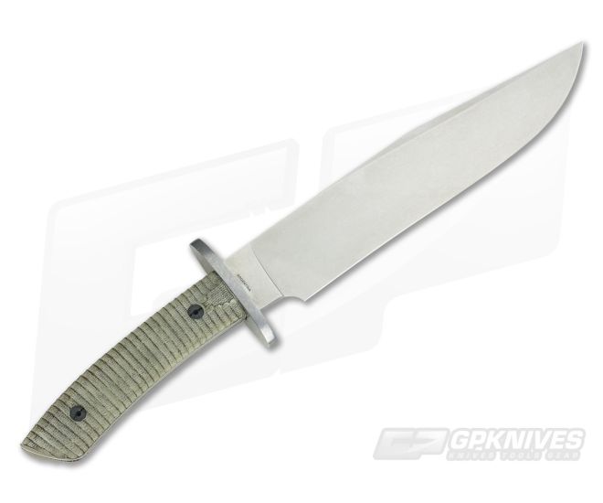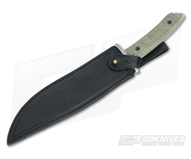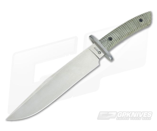 The Boker Arbolito El Gigante fixed blade is a large knife suitable for almost any camping or hunting chore. The El Gigante is crafted in Argentina starting with a full tapered tang of stonewashed Bohler N695 steel. Bohler N695 is a chromium stainless steel with high hardness, wear resistance and high corrosion resistance. The full tang clip point blade is accompanied by grooved green canvas micarta handles for a comfortable yet solid feel in hand. A stainless steel guard has been attached to protect fingers from slipping onto the blade and stonewashed to match the blade finish. Includes a beautifully made stitched black leather sheath for high or low carry. Brand new directly from Boker.
