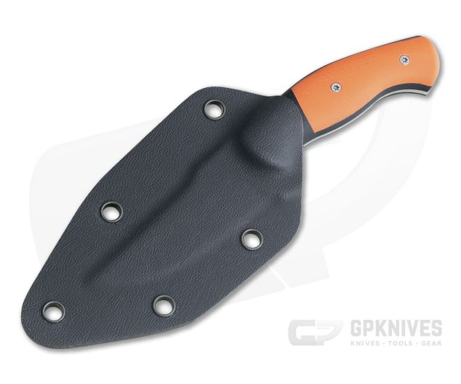 Handle: A full tang construction supports thick, contoured Black G10 handles with Orange G10 overlays for visibility. Micro-texturing offers good traction even when wet while the overlays create a bolstered look for a classic hunting knife feel. Stainless steel Torx hardware fixes the handles securely to the tang while a hidden lanyard hole is situated at the pommel end for added security.