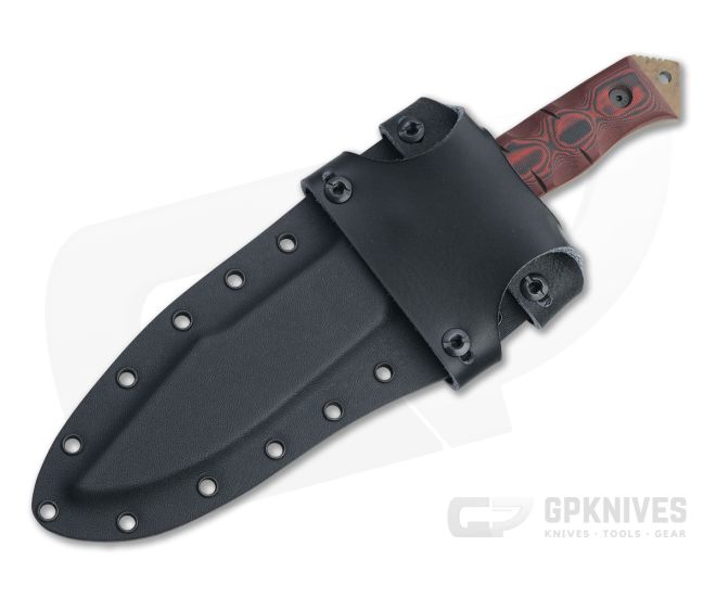 Handle: Thick, matte blasted G10 scales are attached with black stainless steel hardware over red liners to the full tang for a rock solid handle. Contoured for comfort during extended use, the scales are matte blasted and milled with deep grooves and traction cuts for exceptional grip and speed in the hand. Strategic jimping on the forward guard, thumb ramp and pommel offer added security, while the exposed pommel end allows for emergency glass breaking, impact and prying with a hole for lanyard attachment. Each knife is 100% hand made and includes a Certificate of Authenticity with spec sheet and serial number.