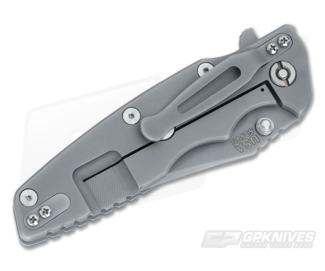 The Handle: The same Gen 1 stylings you love on just a bit larger platform. The finger grooves, shape and texturing fit the hand like a glove. It’s a harmoniously ergonomic experience designed with comfort in mind. This version is dressed in gray and black layered G10 secured to a titanium liner with a gray DLC titanium frame locker on the back. All the standard Hinderer features are present from the Lockbar Stabilizer to open construction and a Ti pocket clip that can be flipped to tip up carry.