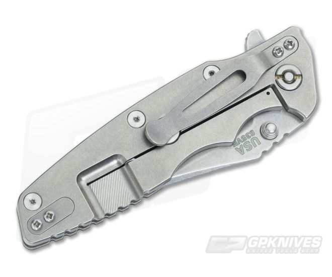 The Blade: 3.5 inch trailing point-styled perfect for every day slicing and piercing tasks. The stonewashed finish will hide the wear marks over time while also looking cool. It operates via two thumb studs or integral flipper tab on Rick’s own 17-4PH state-of-the-art pivot system creating clean, smooth function over the life of the knife. Flipping action is quite easy and smooth, however a bit of wrist action may be required. An upper swedge grind really sets this blade off and about a half an inch of jimping on the spine makes the perfect thumb rest.