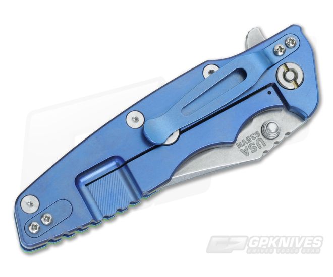 The Handle: The same Gen 1 stylings you love on just a bit larger platform. The finger grooves, shape and texturing fit the hand like a glove. It’s a harmoniously ergonomic experience designed with comfort in mind. This version is dressed in Toxic Green G10 secured to a blue titanium liner with a blue anodized titanium frame locker on the back. All the standard Hinderer features are present from the Lockbar Stabilizer to open construction and a Ti pocket clip that can be flipped to tip up carry.