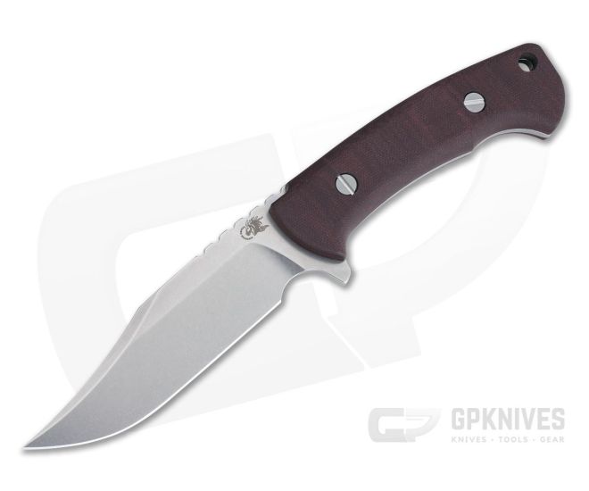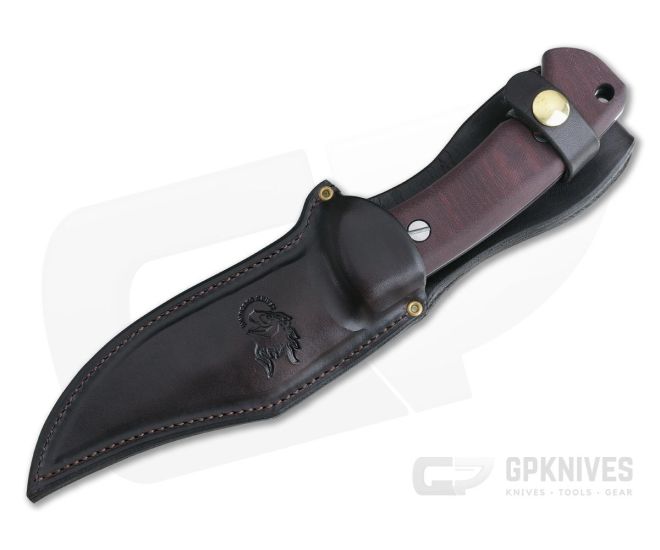 Handle & Sheath: Beefy, 3D Machined Burgundy Canvas Micarta handles fill the hand in any grip and offer a secure and ergonomic handle without the need for aggressive traction. A “bird’s head” style pommel that allows for a secure “pinky” finger grip that enhances control and security in the hand. The handle is attached with sturdy flat head bolts that allow for easy removal of the scales for cleaning and maintenance. A generous hole is provided for lanyard attachment.