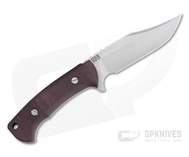 After nearly two years in design and R&D Rick Hinderer and Hinderer Knives have released the Ranch Bowie into the wild! This classic Bowie knife design has been executed with modern aesthetics and materials including a super tough CPM-3V blade and 3D Contoured Canvas Micarta handle scales. The Ranch Bowie is a full-sized fixed blade that is built tough to handle any task you throw at it. This version comes with a stonewashed blade and Burgundy Canvas Micarta handles.