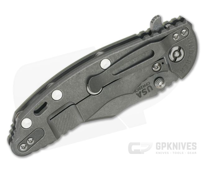 Handle: Full titanium frame lock and liner are matching Working Finish for a rugged, wear hiding look with subdued visual appeal. Satin Hardware and standoffs create one solid package while a 3D textured G10 scale coupled with strategically placed jimping provides a solid grip. A blade choil allows for a more forward grip for controlled work. Additional features include the Hinderer Lockbar Stabilizer, titanium clip insert and customizable modular design.