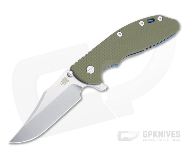 The largest of the XM family, the Hinderer Knives XM-24 is a precision-crafted hard-use tactical folder sized for users with extra large hands or are planing on wearing gloves. Easy, one-hand operation and a reliable lock system are the foundation of the XM series. The XM-24 features an integral flipper tab and dual thumb studs for fast, easy operation in a compact platform that is comfortable for most users. This version comes with a stonewashed CPM-20CV Bowie blade, OD Green G10 scale, and matching stonewashed blue anodized titanium frame and liner.